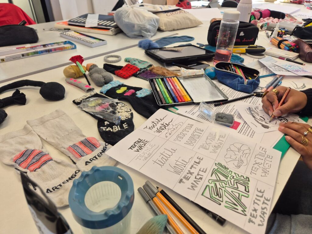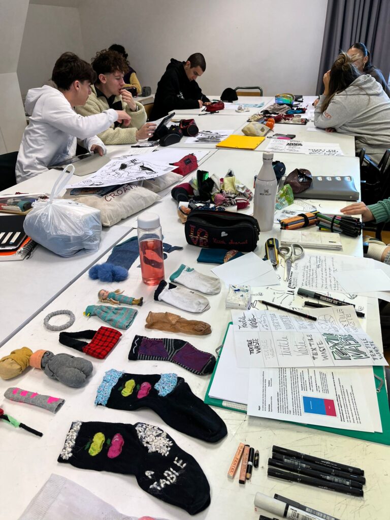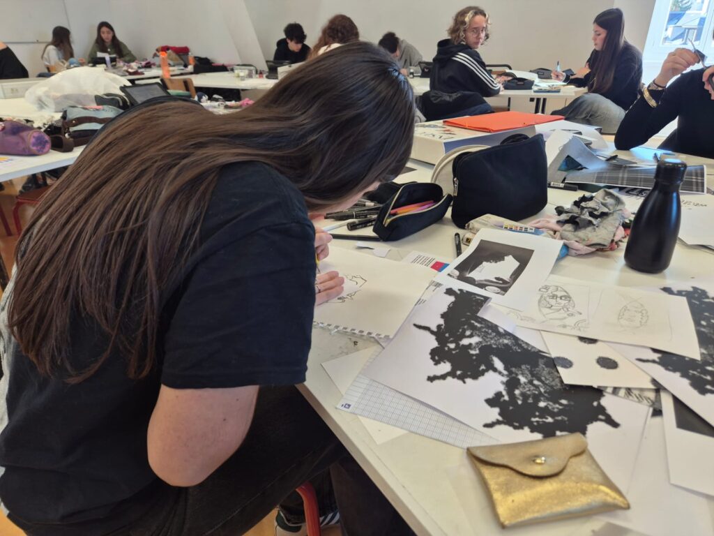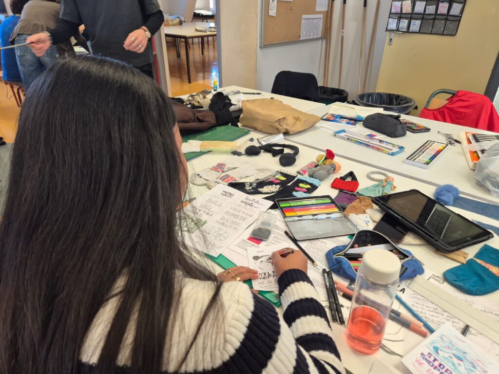 Encadrés par Marianne Rulland, graphiste, qui était intervenue il y a quelques jours pour présenter son travail, les élèves ont élaboré des visuels engagés, format carte postale, sur le thème de la revalorisation textile.