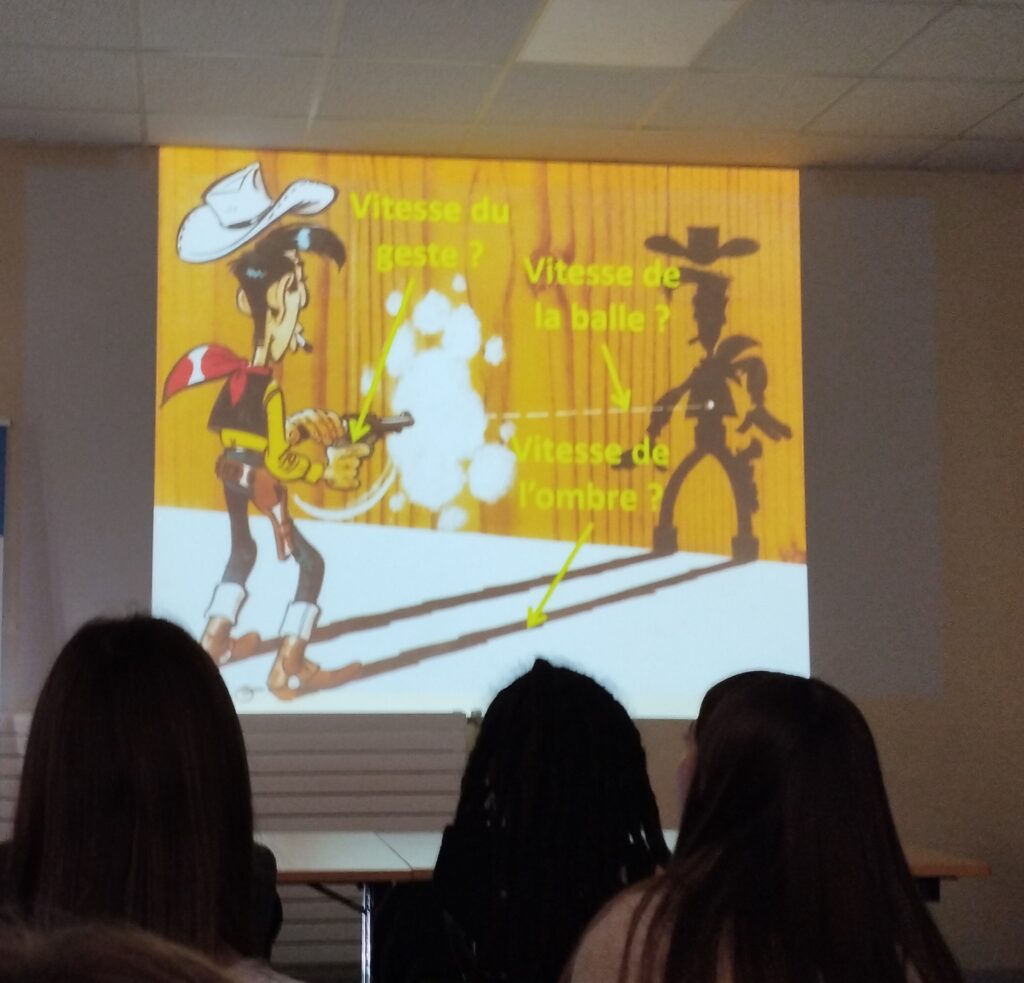 Dans le cadre de la Fête de la Science, les élèves de seconde 10 ont assisté à une conférence de M. Philippe Arguel, mêlant sciences et bande dessinée pour explorer les notions fondamentales de l’optique.